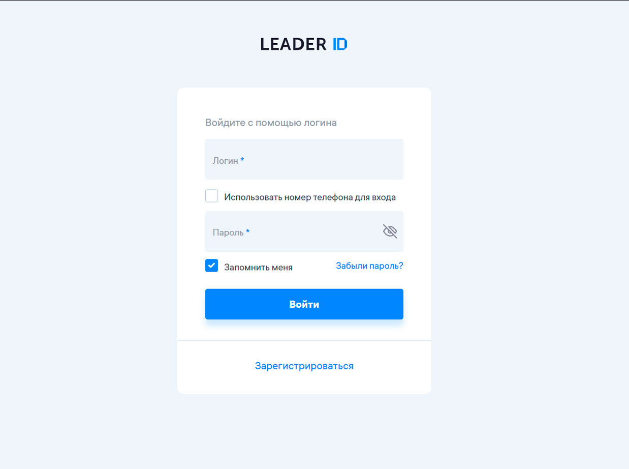 Если у Вас нет логина и пароля для входа на Leader-Id, то сначала зарегистрируйтесь, запомните свои логин и пароль.