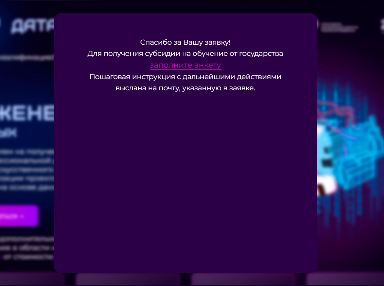 Появляется диалоговое окно со ссылкой на анкету участника. Нажмите «Заполните анкету».